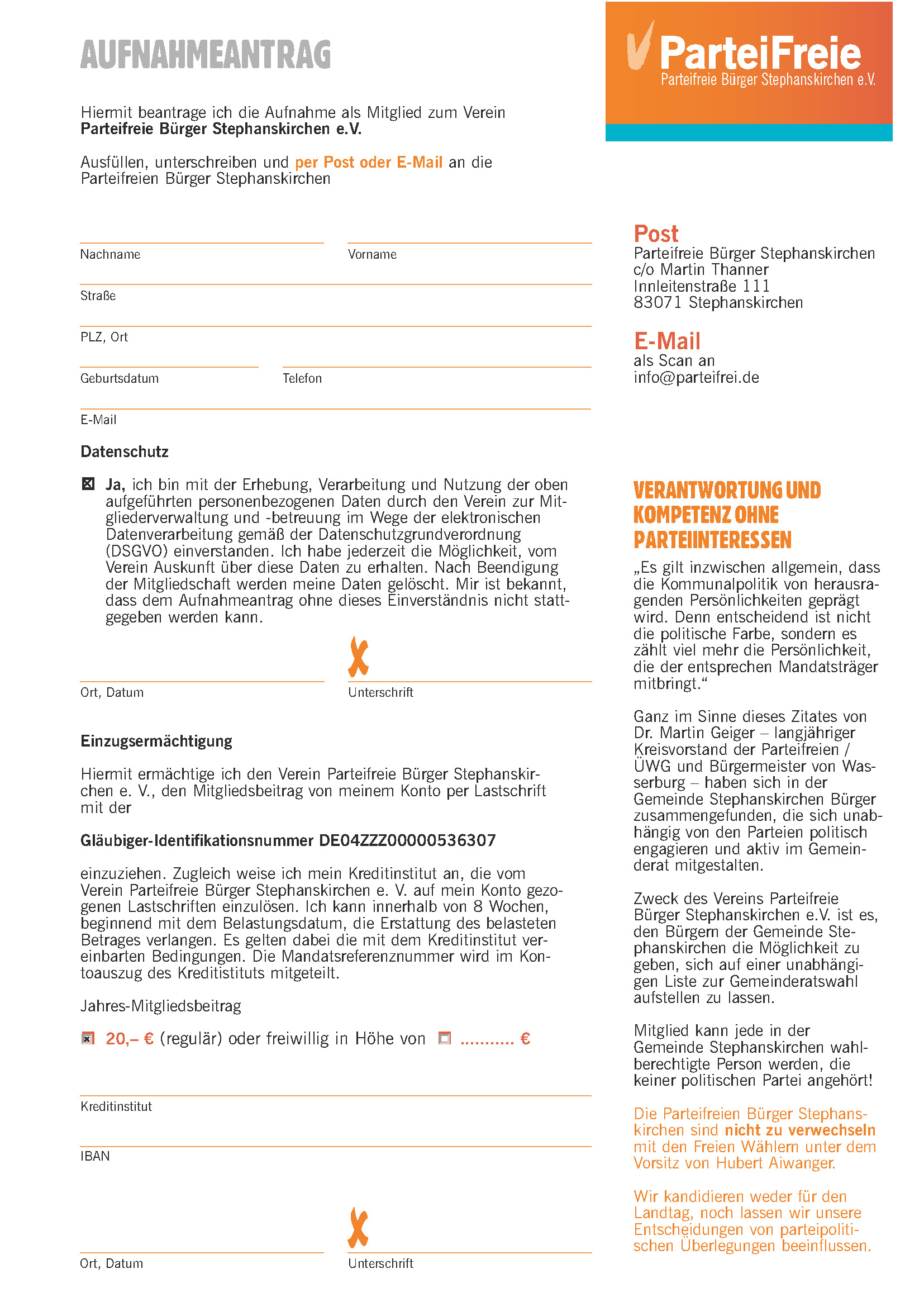 Aufnahmeantrag PARTEIFREIE Stephanskirchen